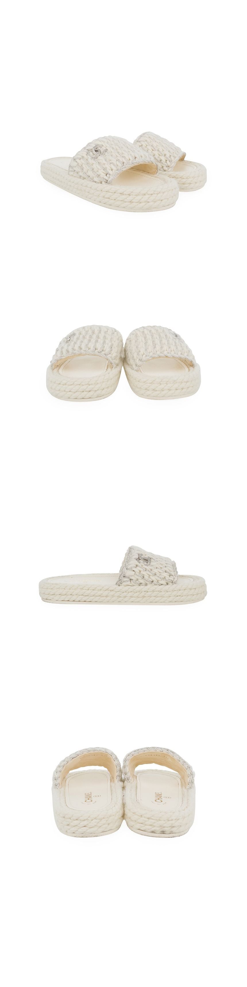 Product Name: CHANEL Braided Knit CC Logo Mule Slipper 37 White/Silver 5ET0653