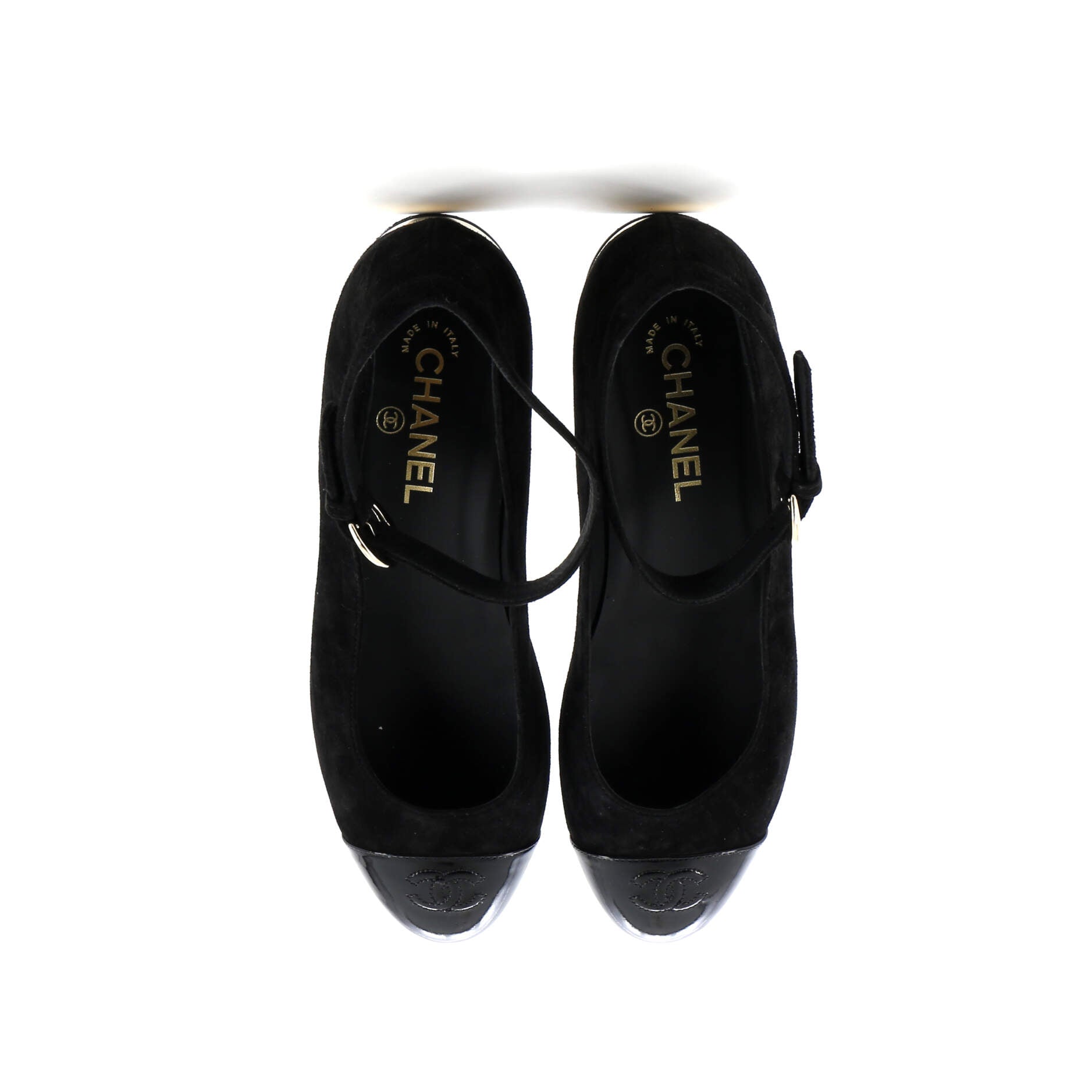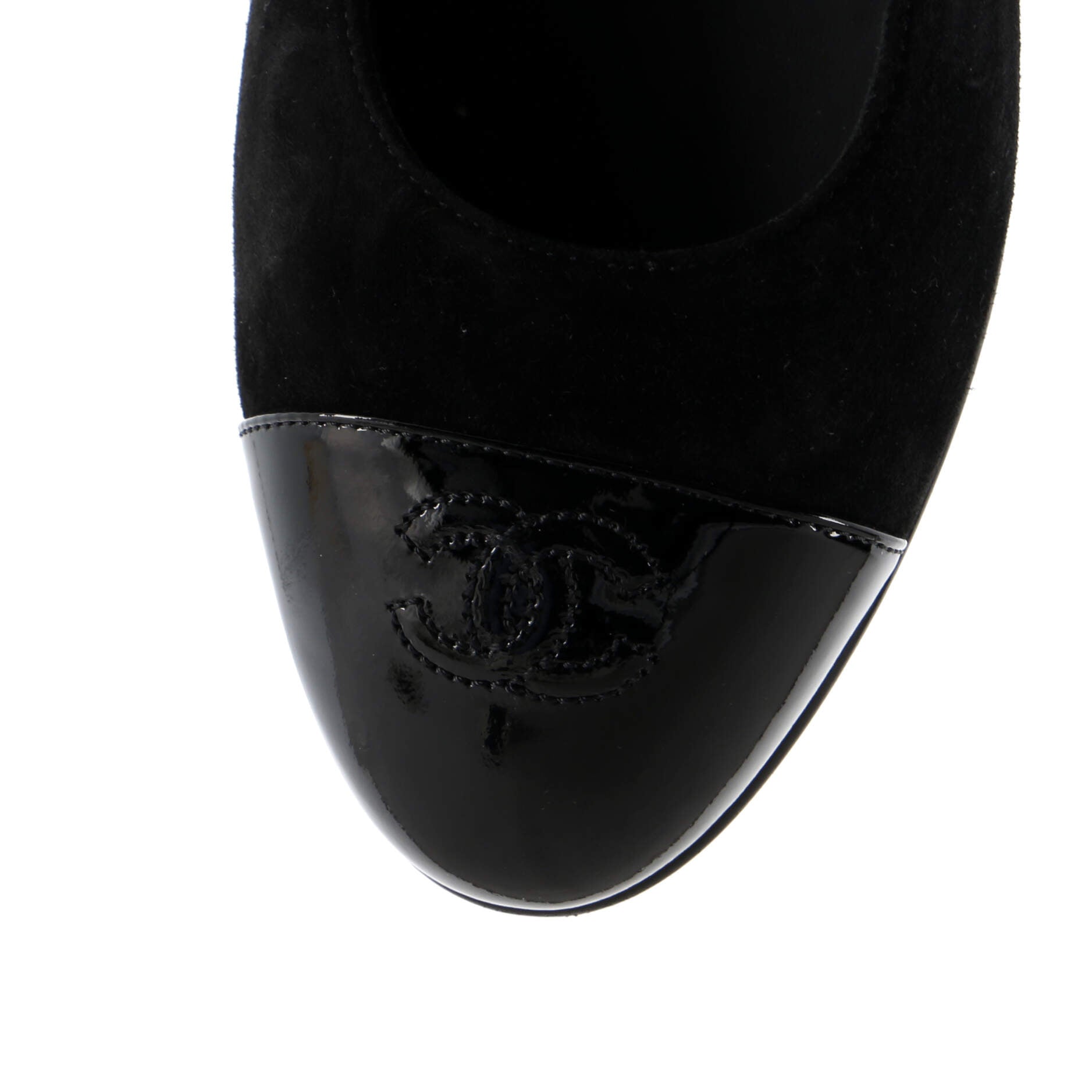 Model: CC Cap Toe Mary Jane Flats Suede with Patent