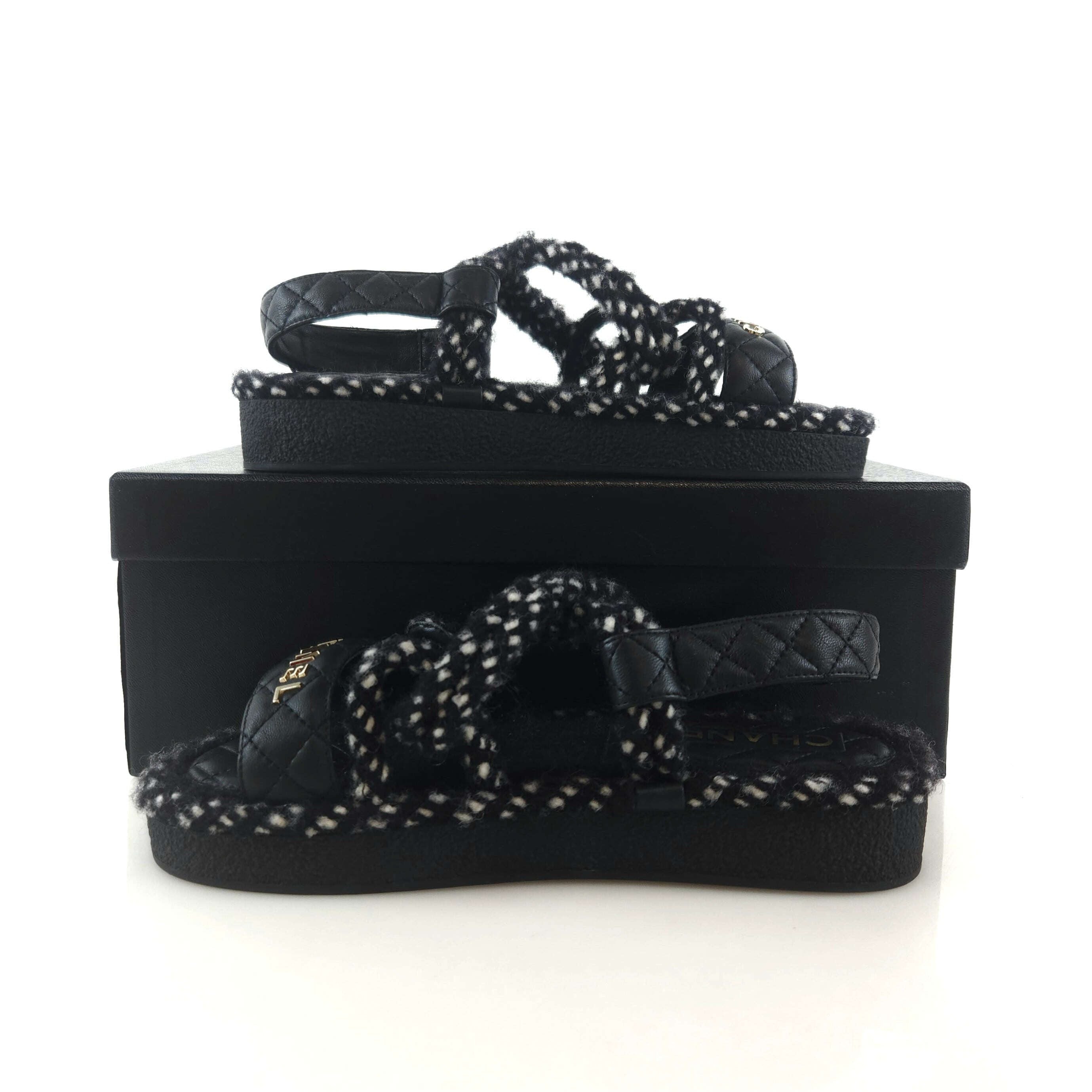 CHANEL Logo Rope Strap Velcro Sandals G35689 7243