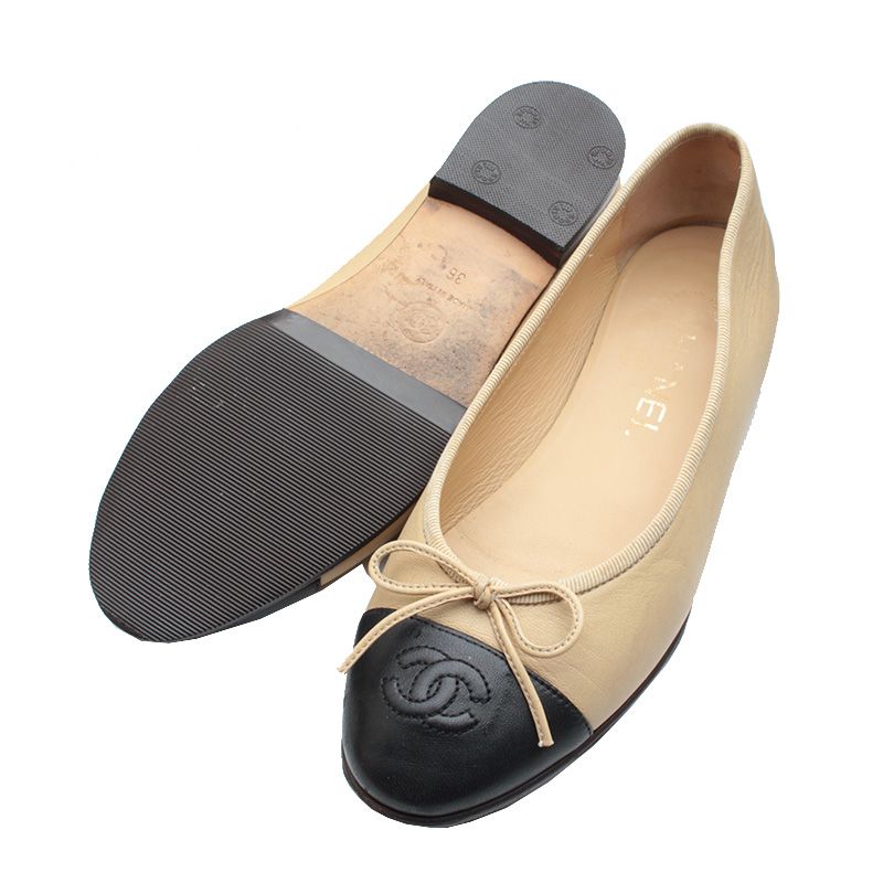 Product Name: CHANEL Two-Tone Lambskin Flat Shoes 36 SKU