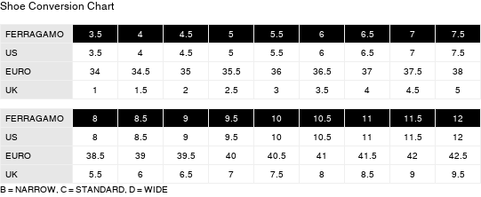 • Please Note: B Indicates Narrow Sizing; C Indicates Standard Sizing; D Indicates Wide Sizing; M Indicates Medium Sizing.