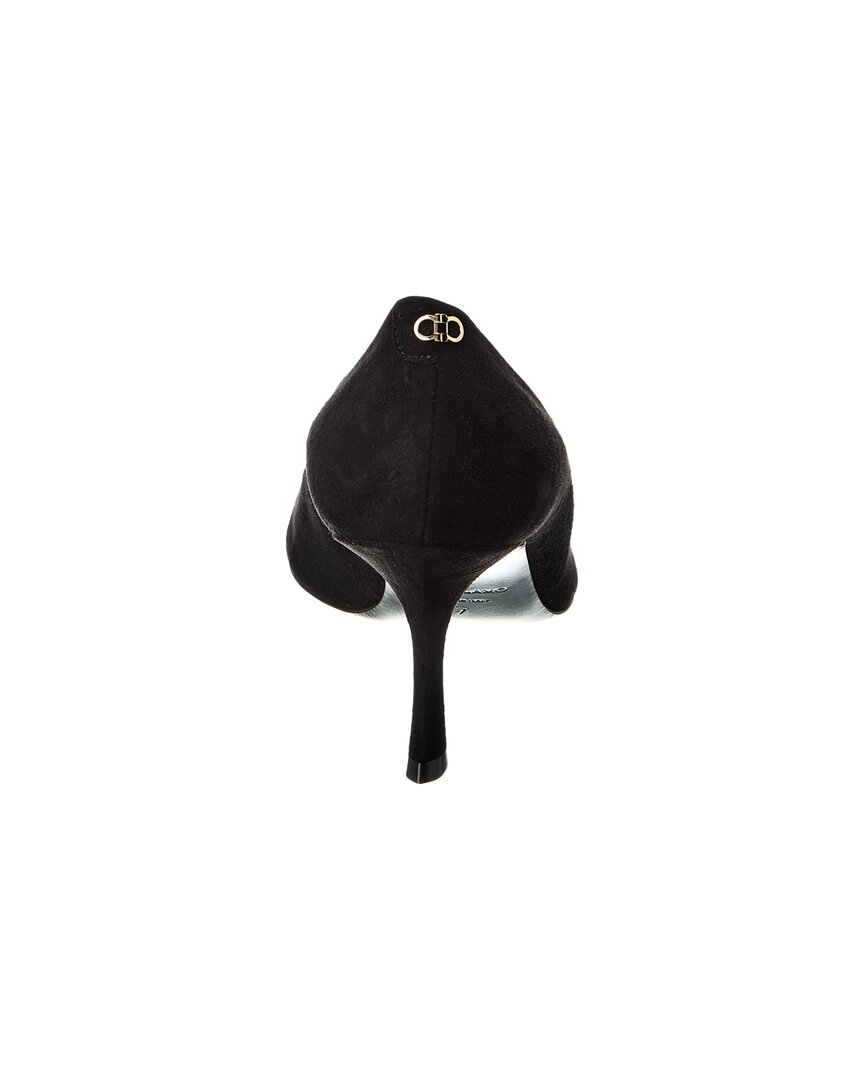 • Elydea Suede Pump In Black Suede And Gold-Tone Hardware With Gancini Detail At Heel And Pointy-Toe