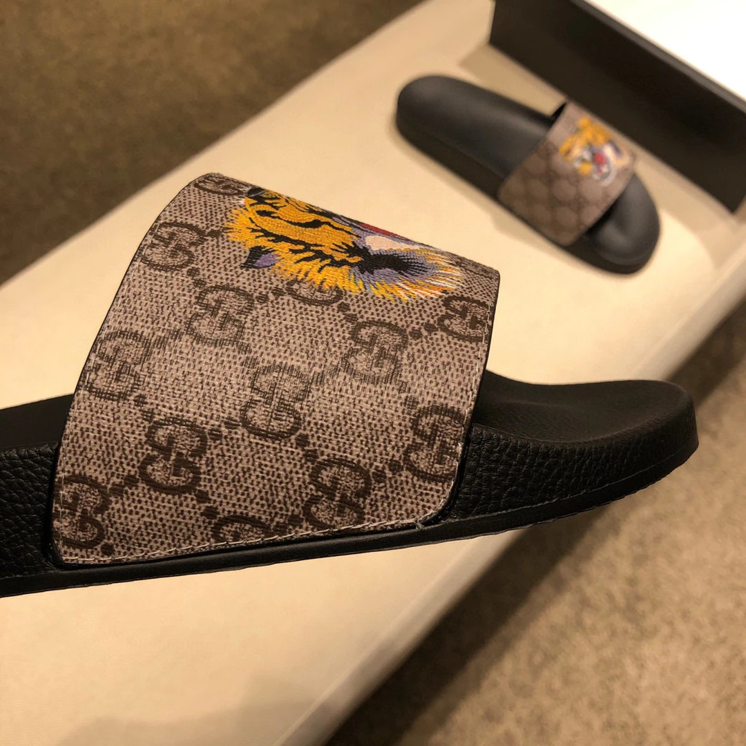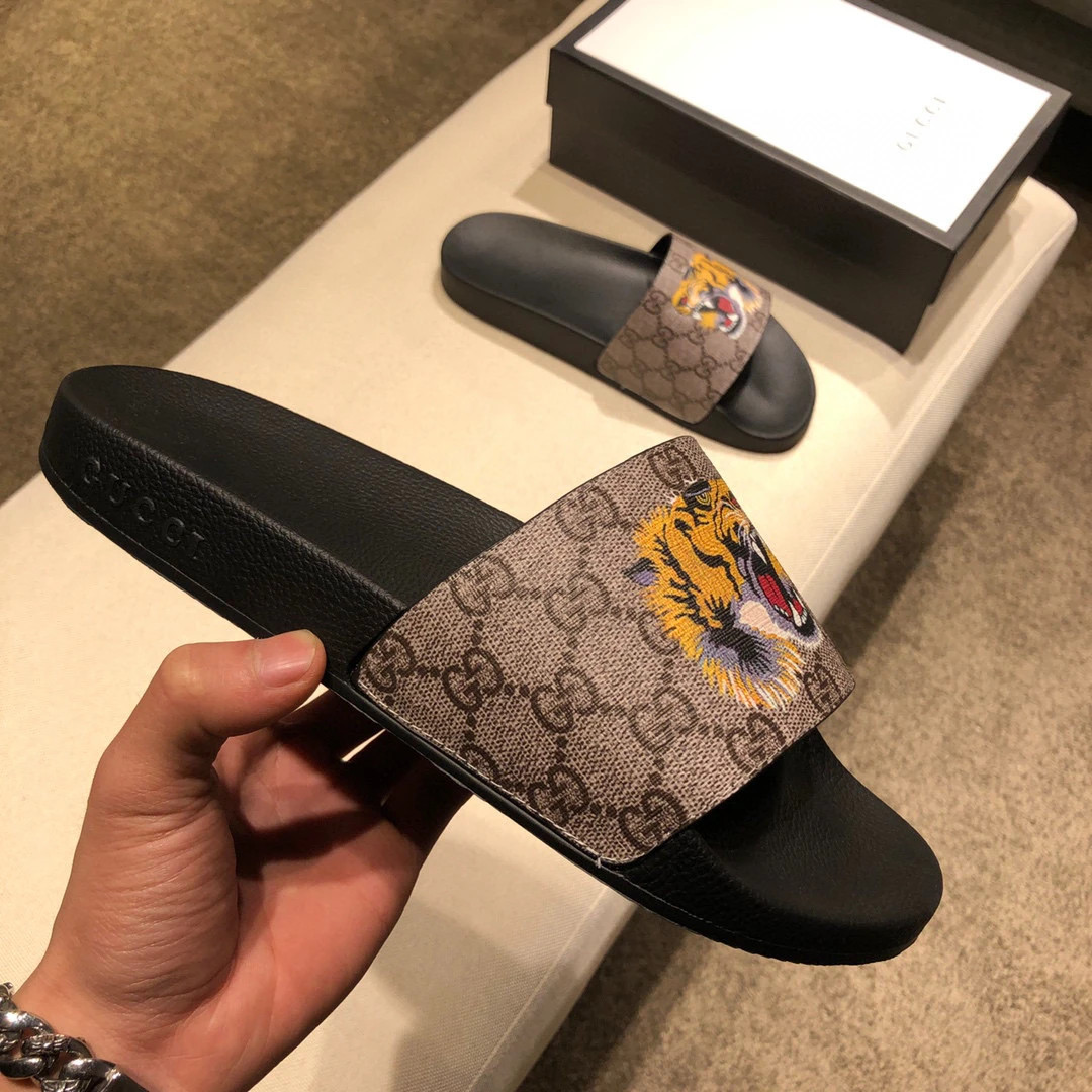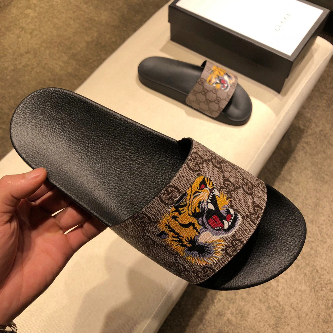 Gucci Beige Gg Supreme Roaring Tiger Slide Sandal