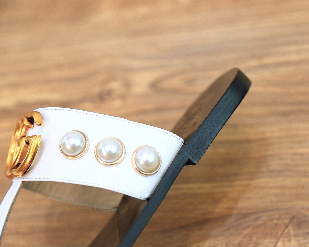 You're viewing: Gucci Double G Calfskin Sandal With Pearls In White Original price was: 334.31$.Current price is: 238.79$.