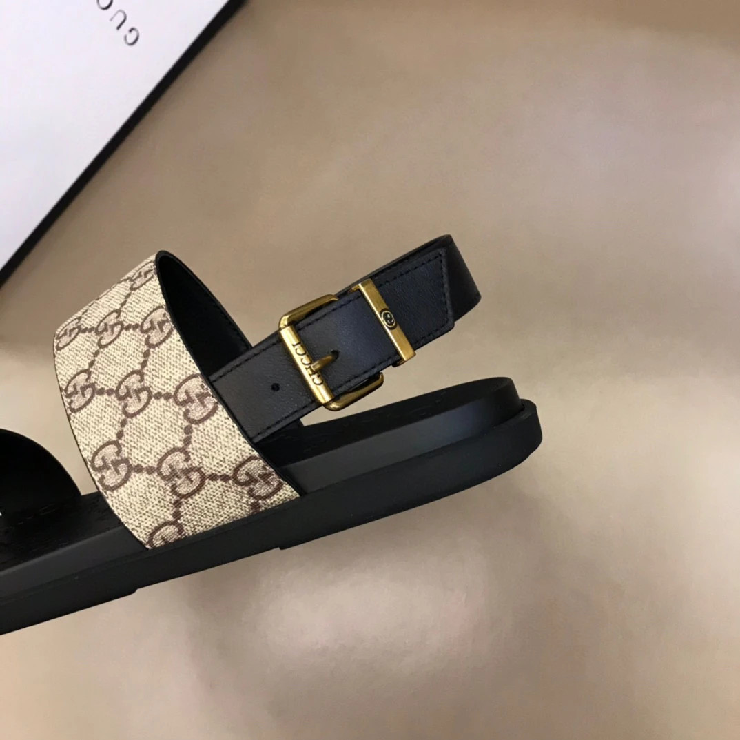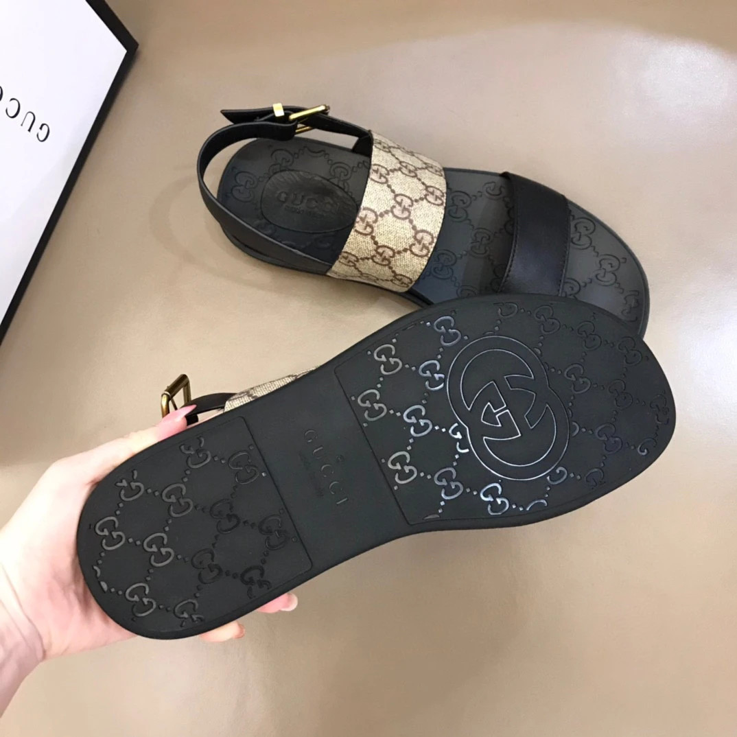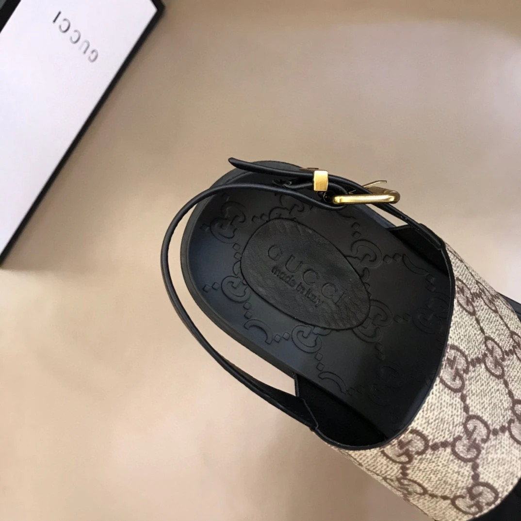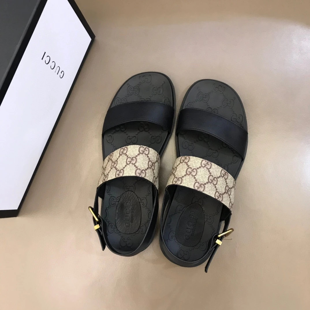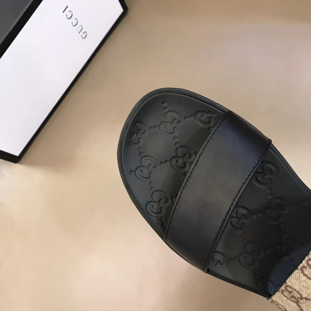 – Gucci high-end men’s summer slippers, the upper material is the original webbing with golden hardware buckles, showing the big-name style, casual, relaxed and comfortable, high-quality boutique, must be in summer