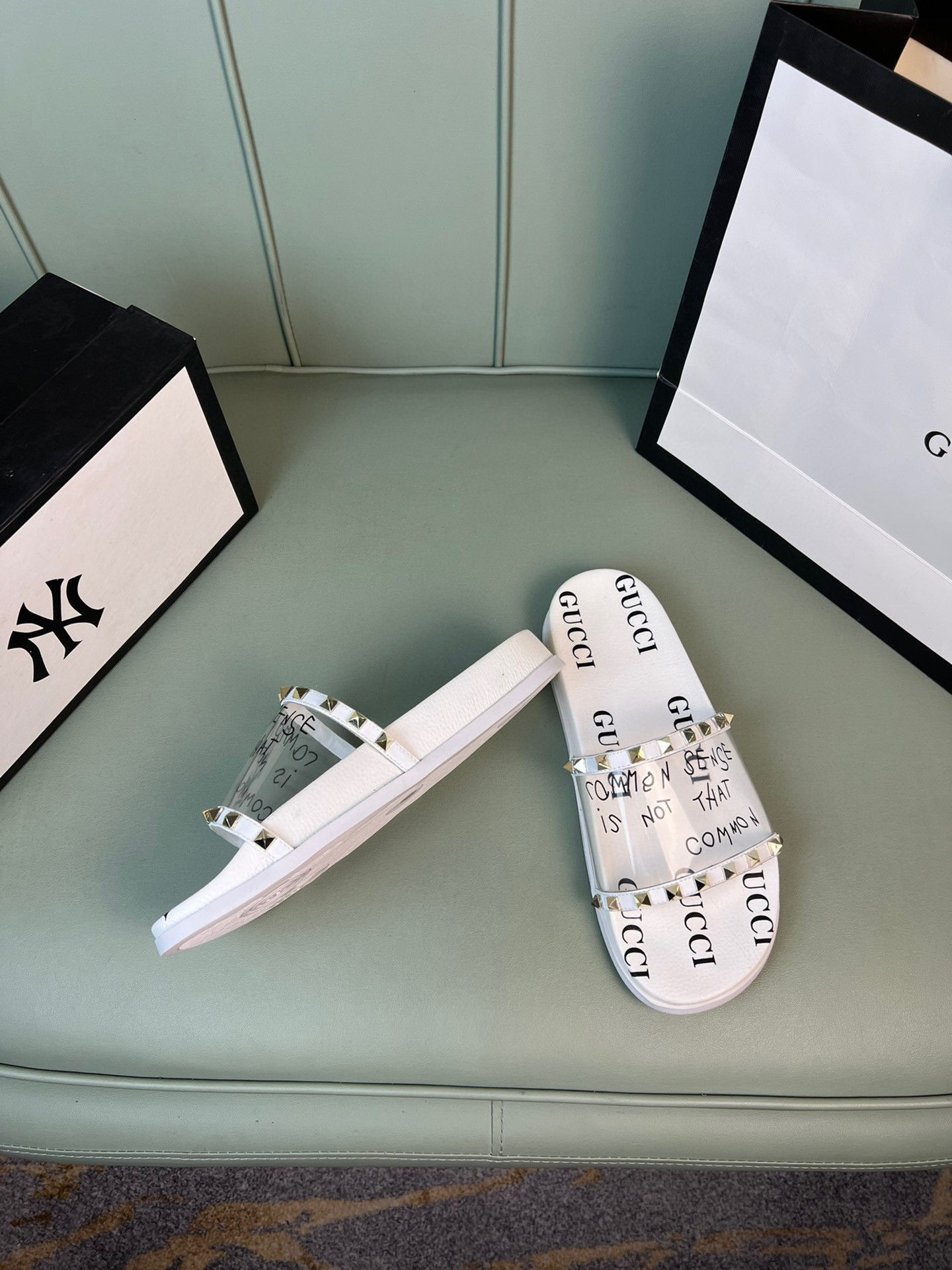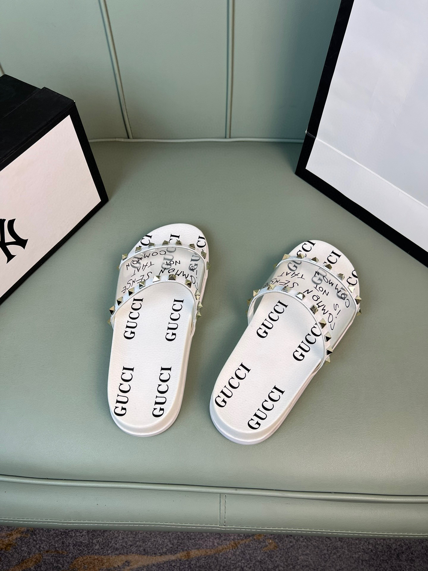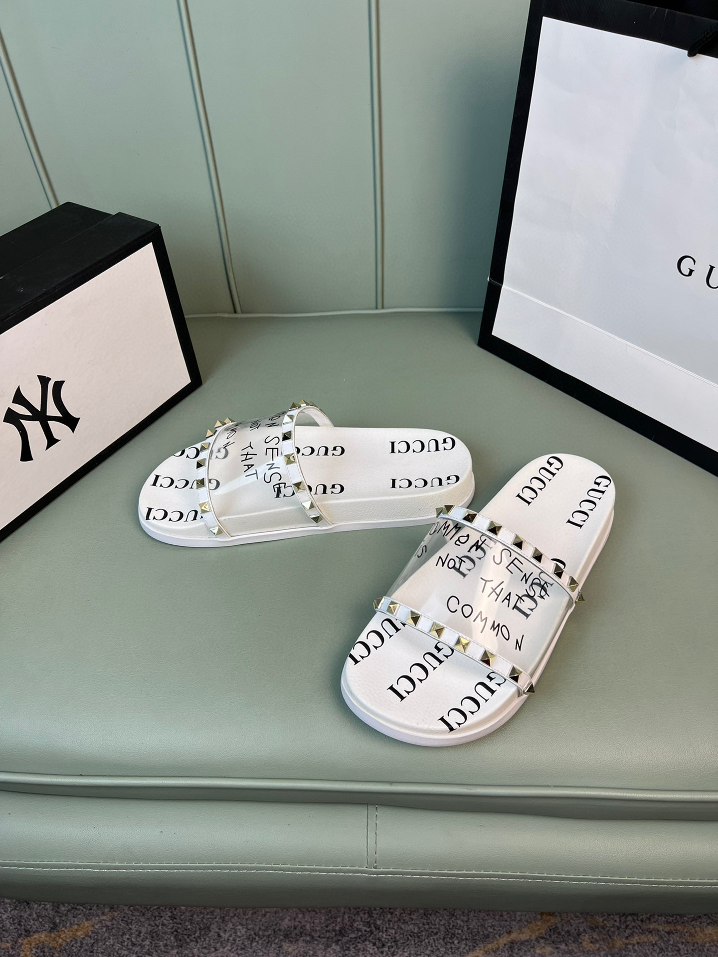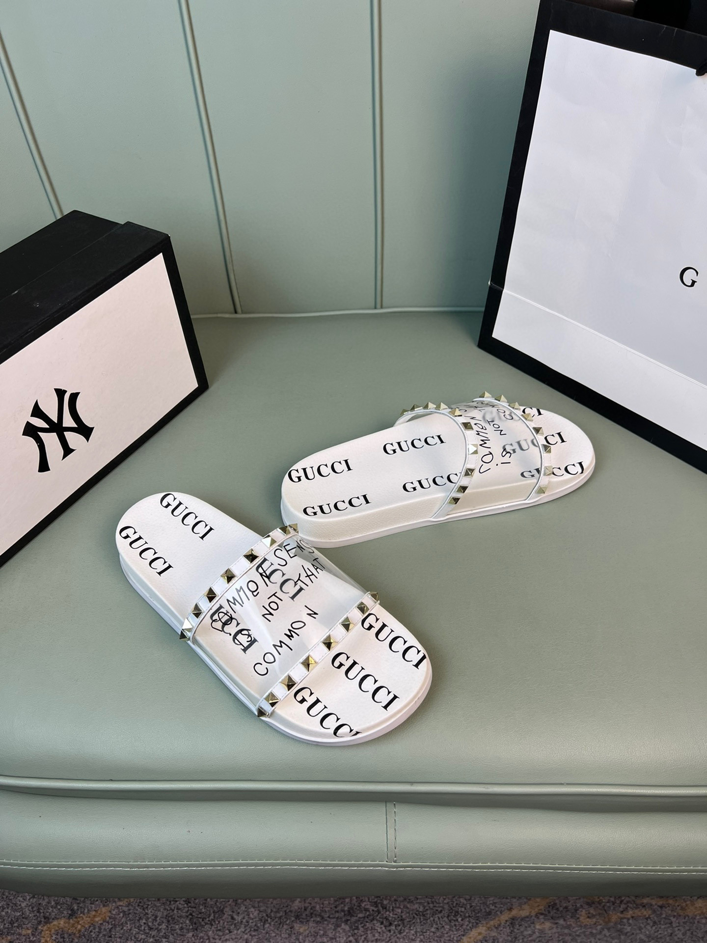 Be the first to review “Gucci Slide With Gucci Logo In White Transparent Rubber, Men”