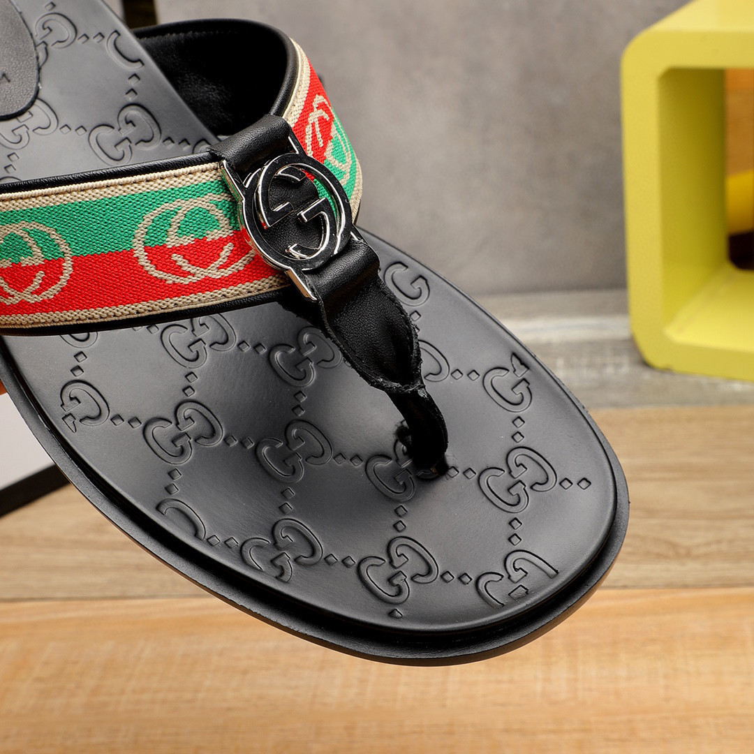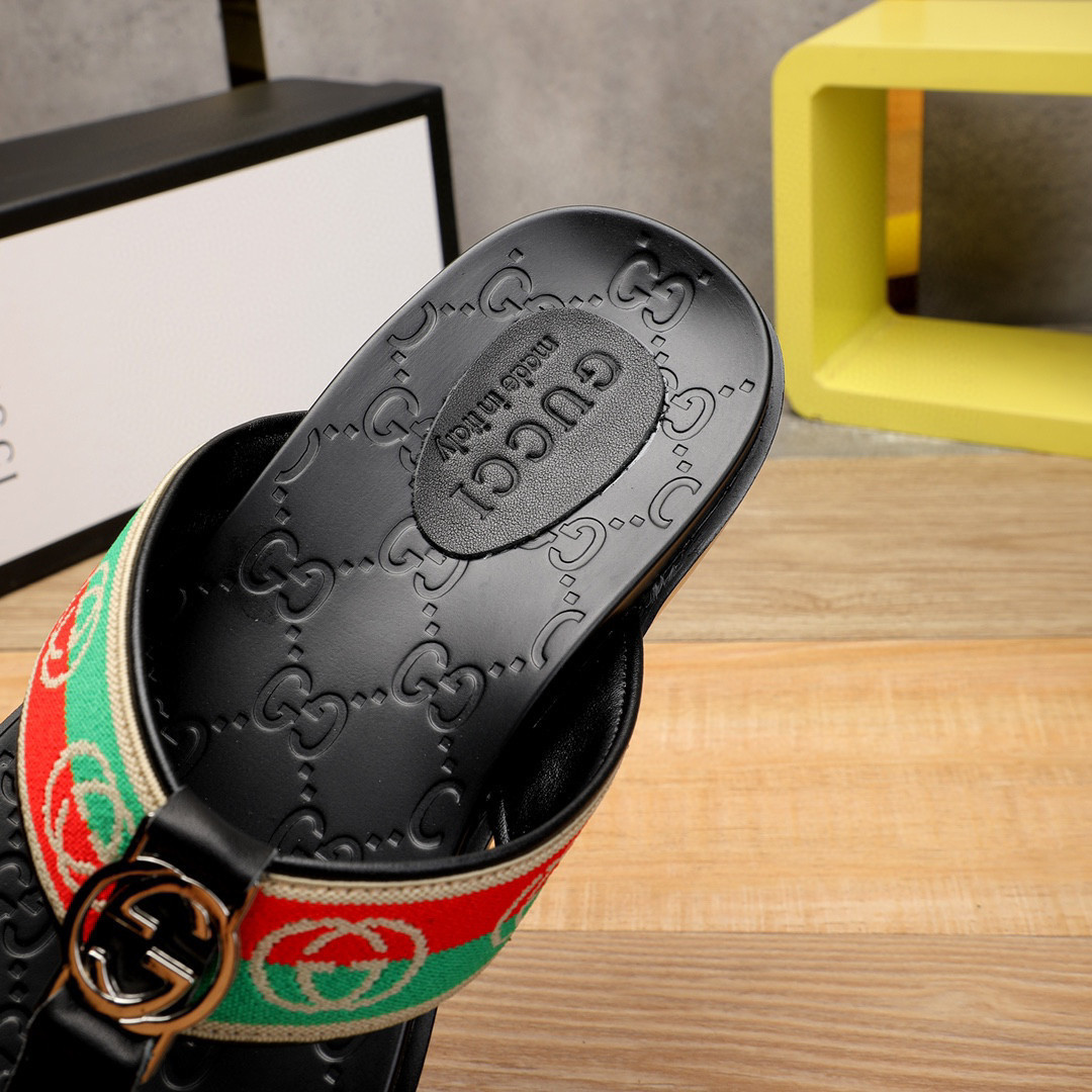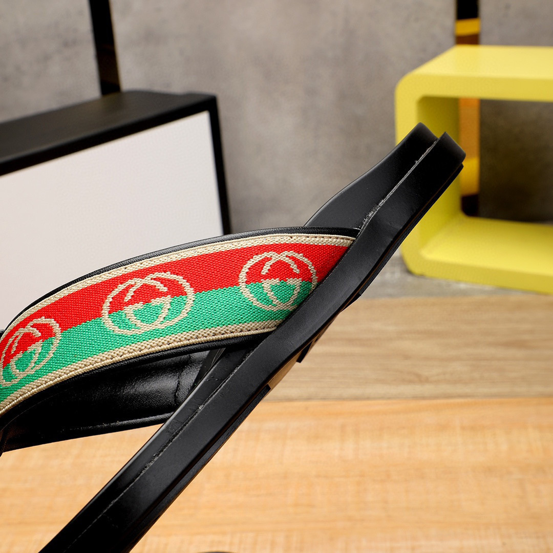 House codes define the traditional thong sandal, presented the green and red Web on the strap juxtaposed with the Interlocking G detail in contrasting metal tones.