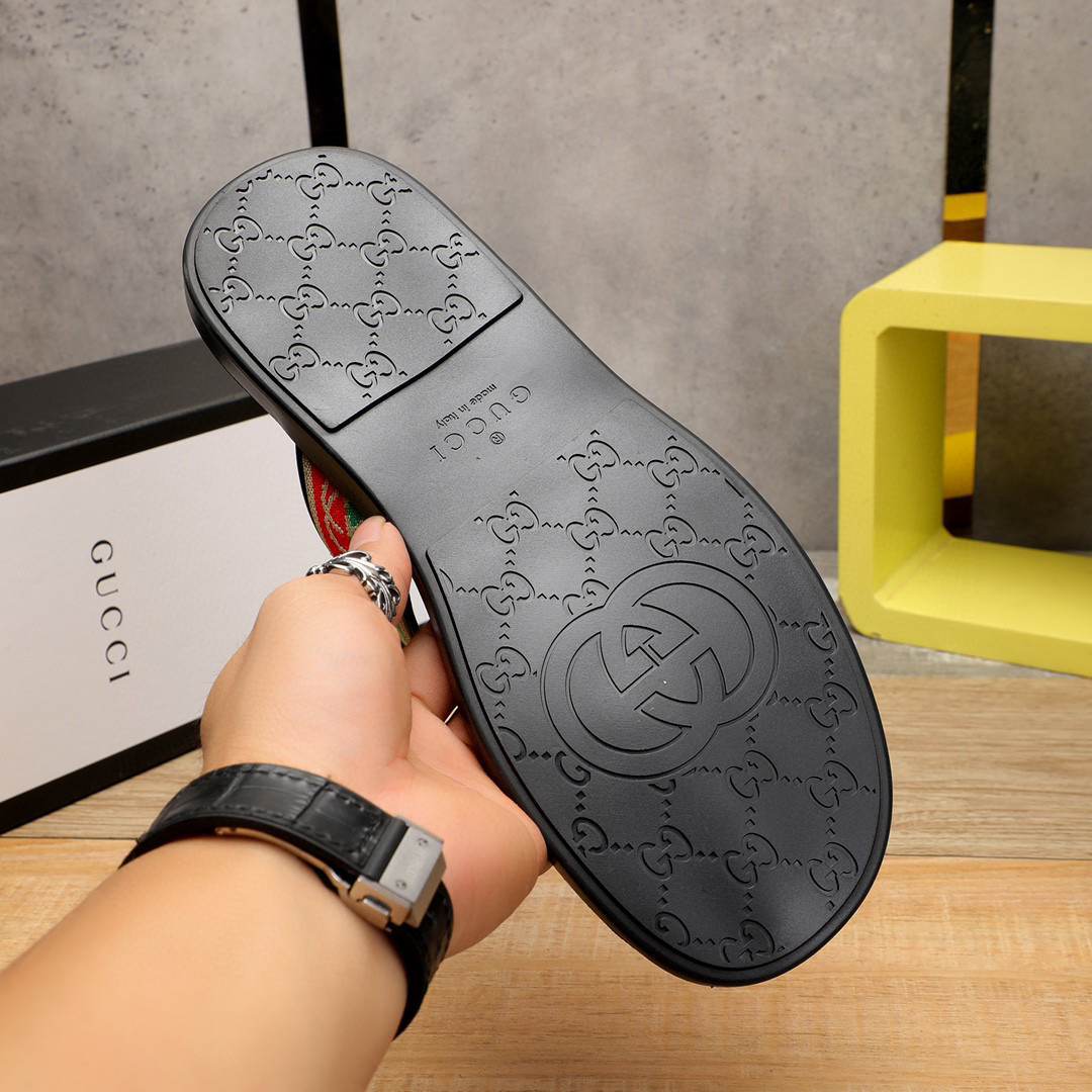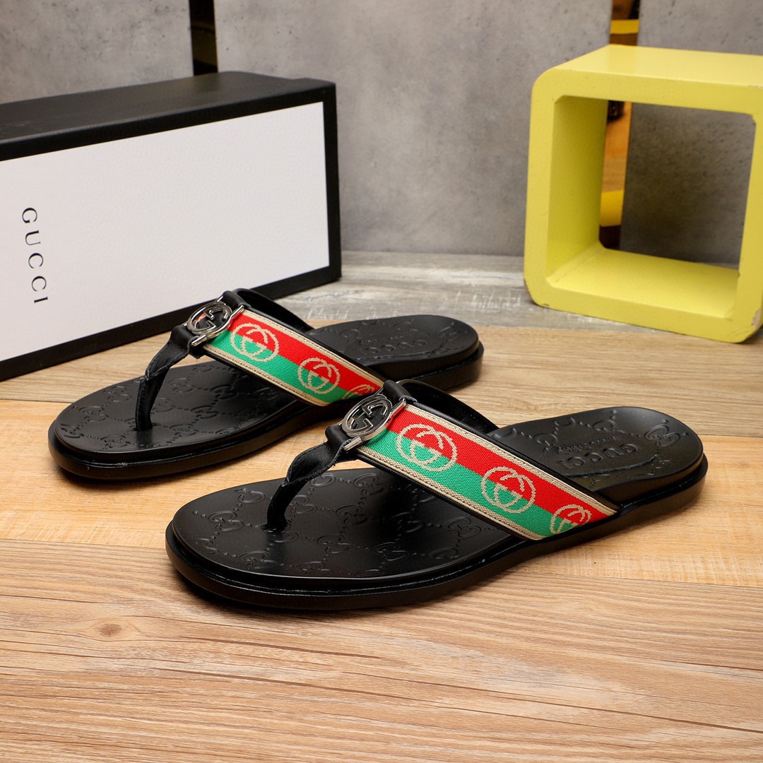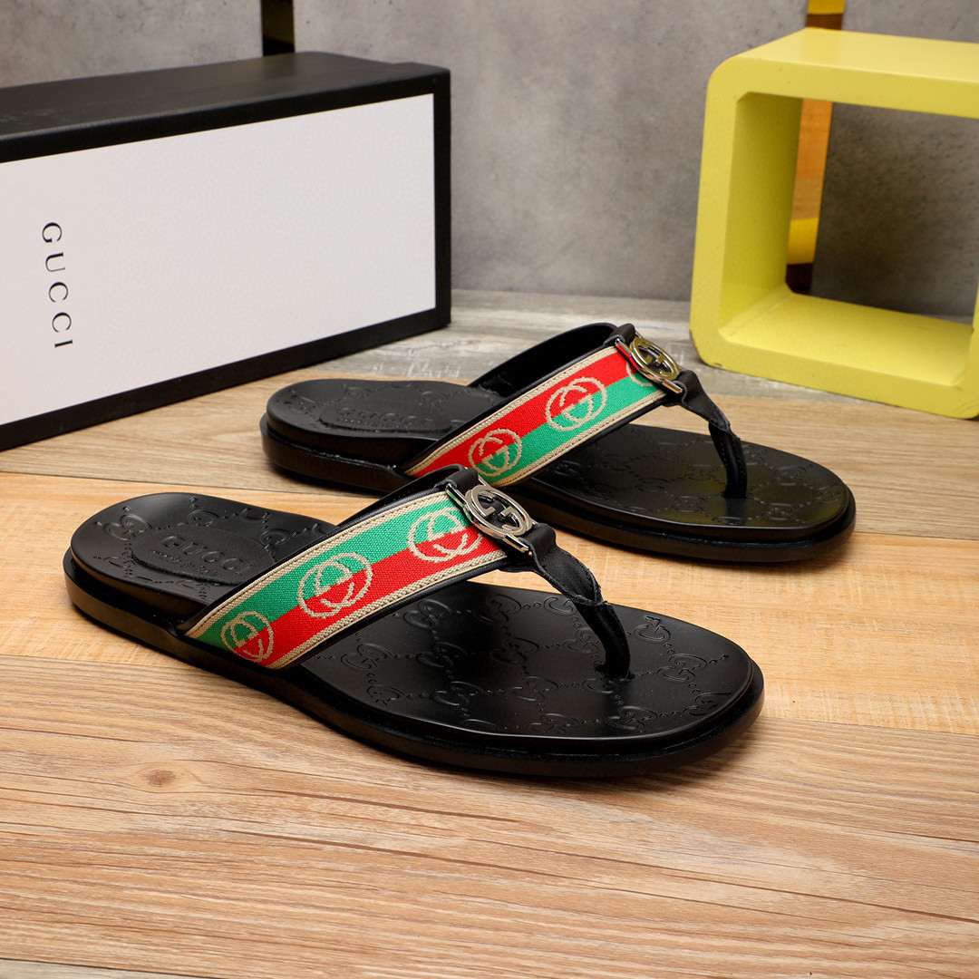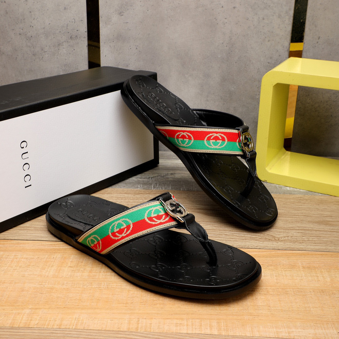 House codes define the traditional thong sandal, presented the green and red Web on the strap juxtaposed with the Interlocking G detail in contrasting metal tones.