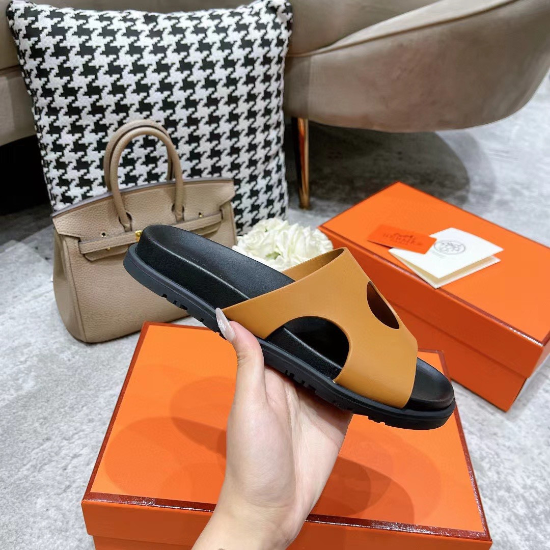 Hermes Edith Cut-Out Sandal Cowhide In Brown