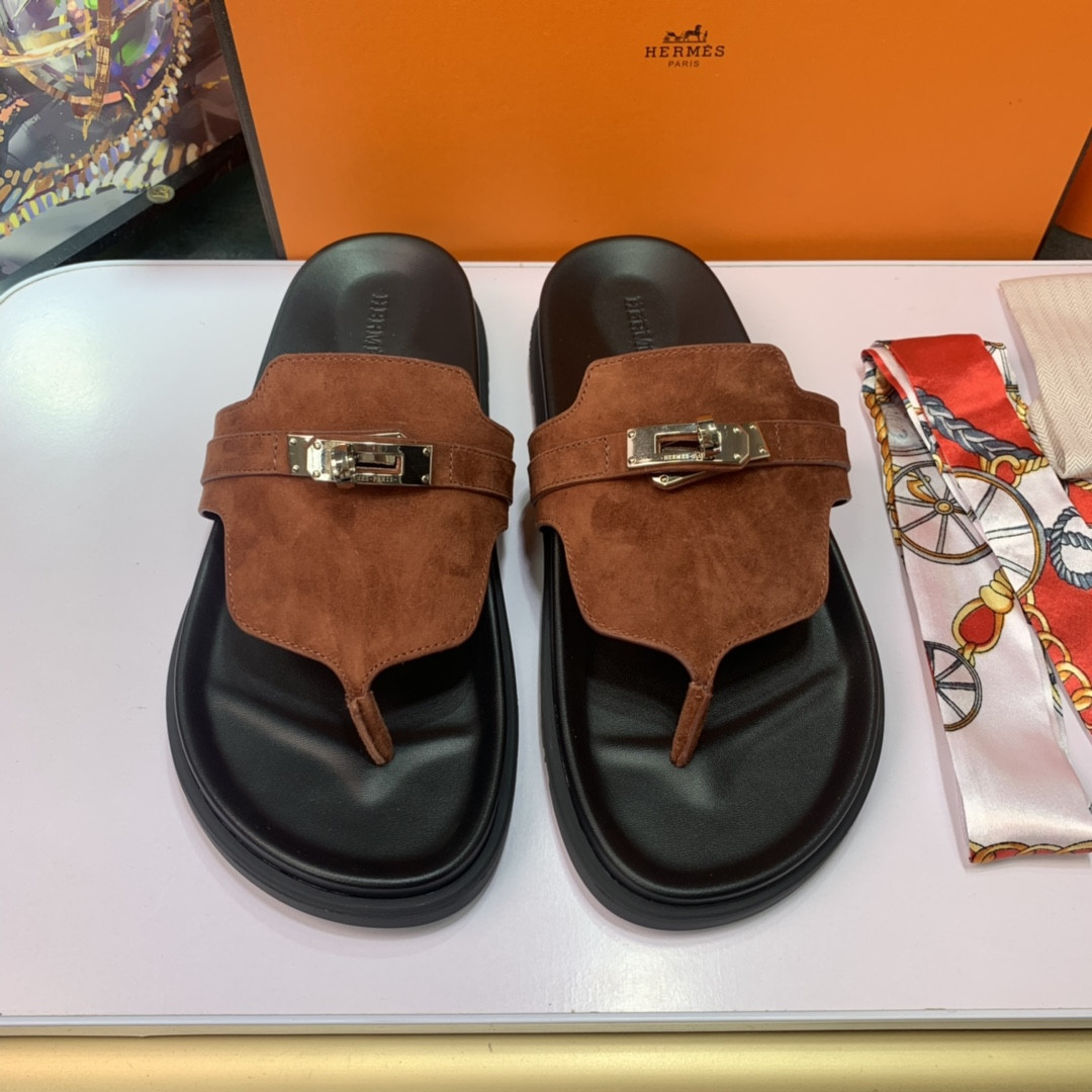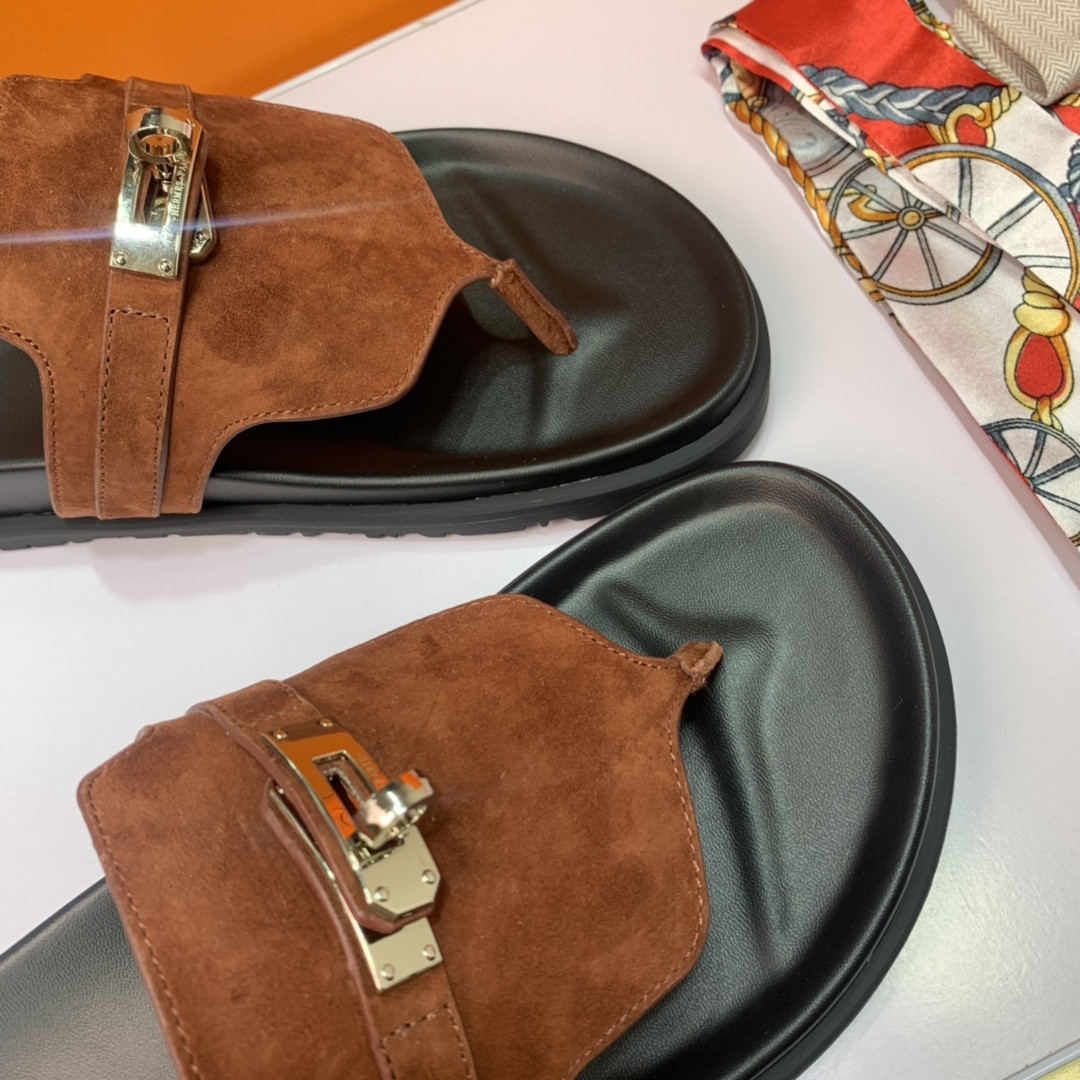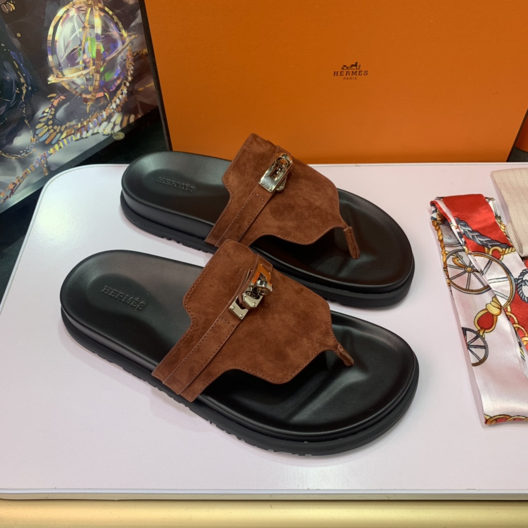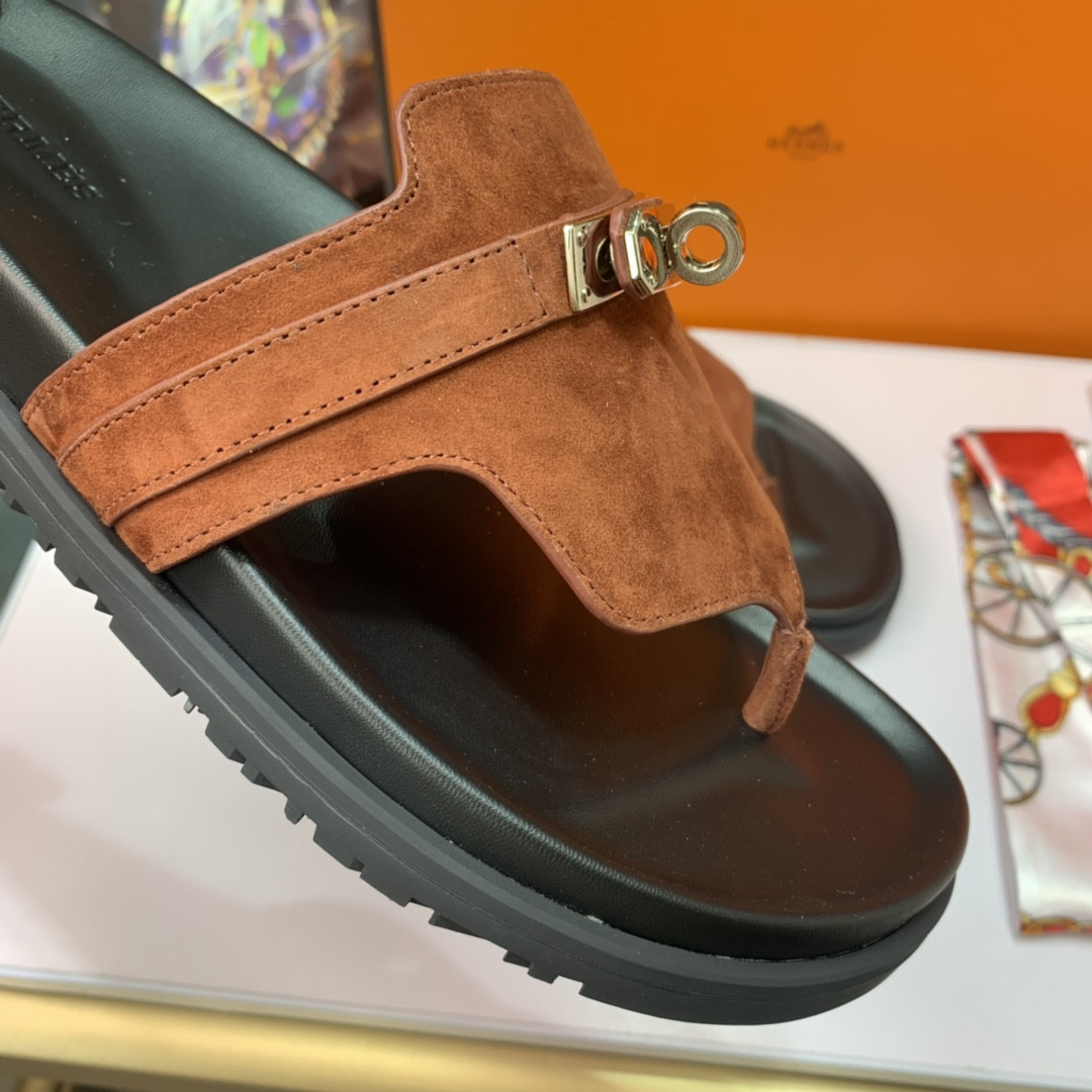 Hermes Empire Sandal In Dark Brown Suede Sheepskin