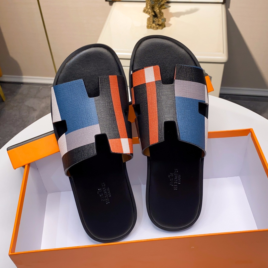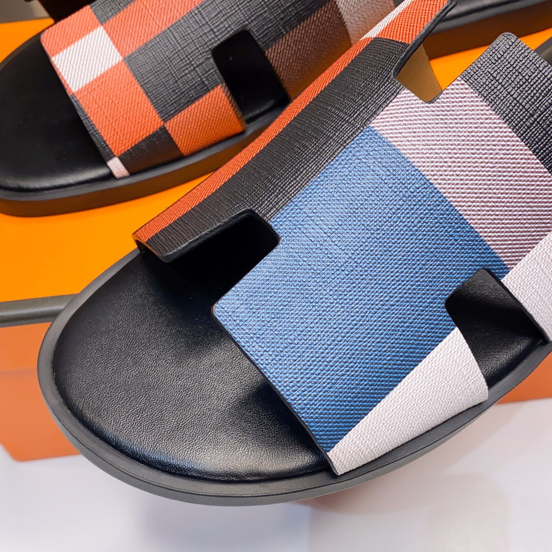 Hermes Izmir Sandal Intercolor Splicing Epsom Calfskin In Black/Blue/Orange