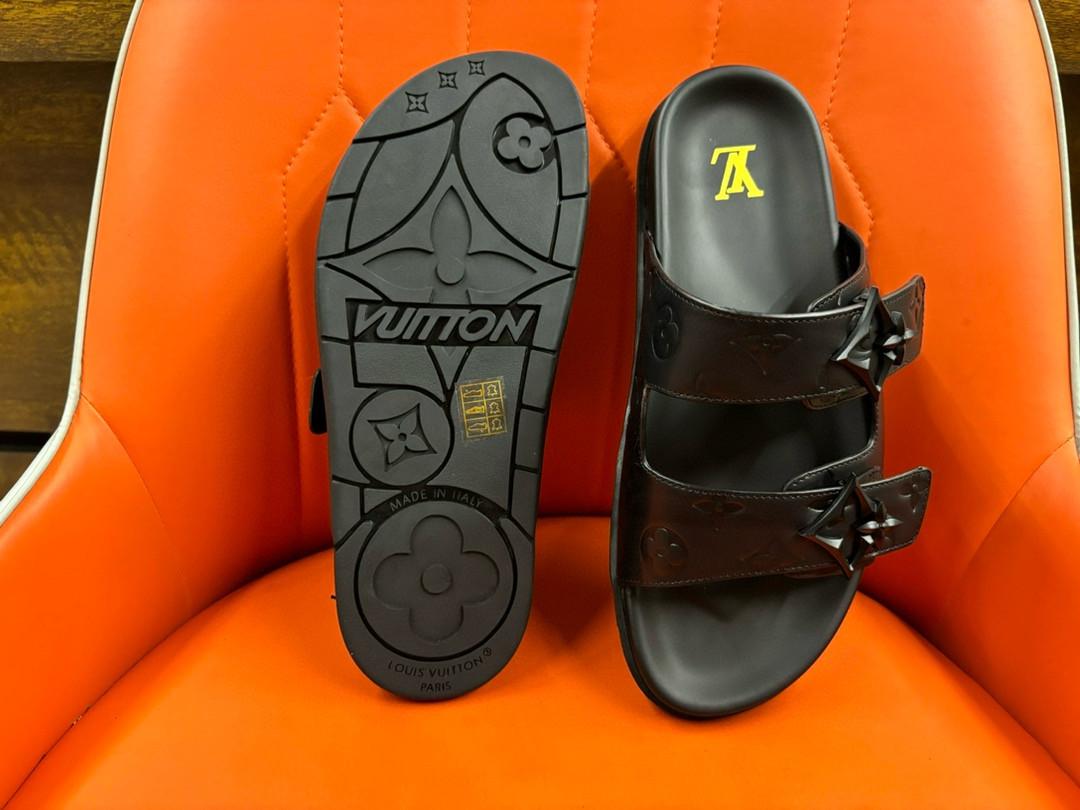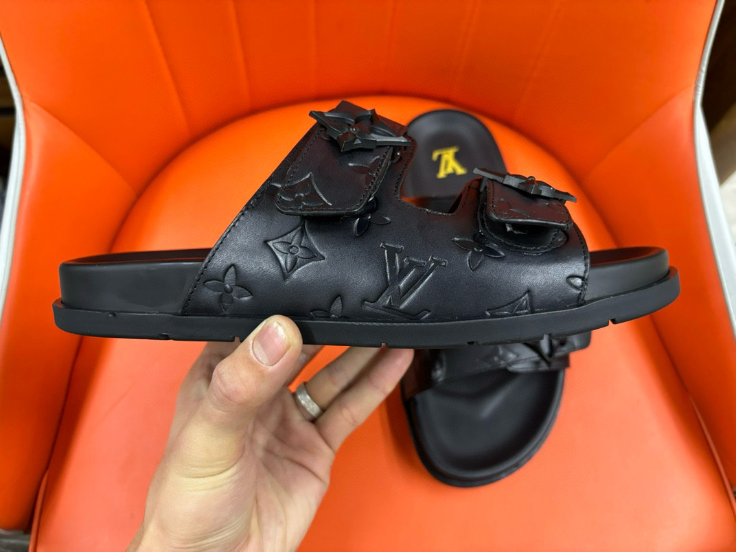 You're viewing: Louis Vuitton Double Straps Mule Slide In Black Debossed Original price was: 334.31$.Current price is: 238.79$.
