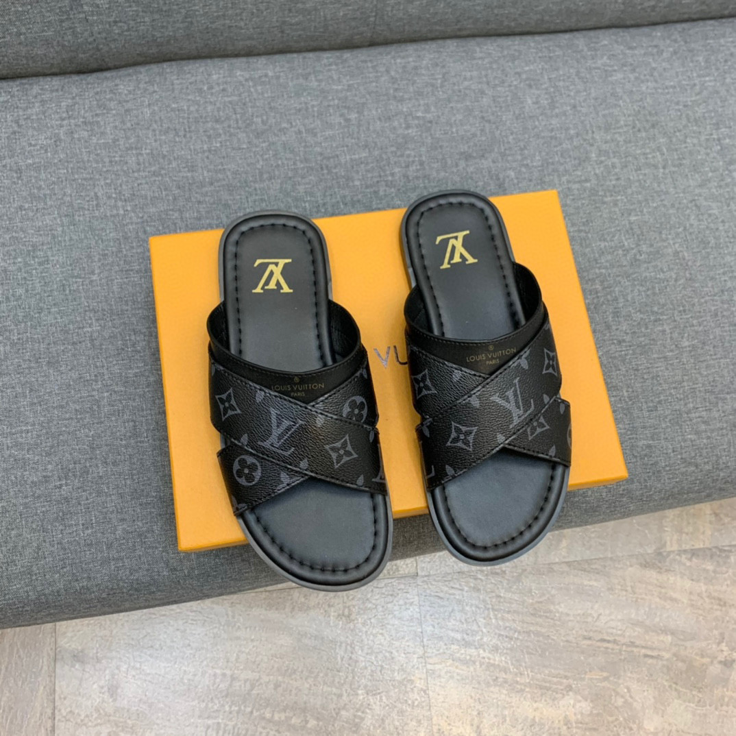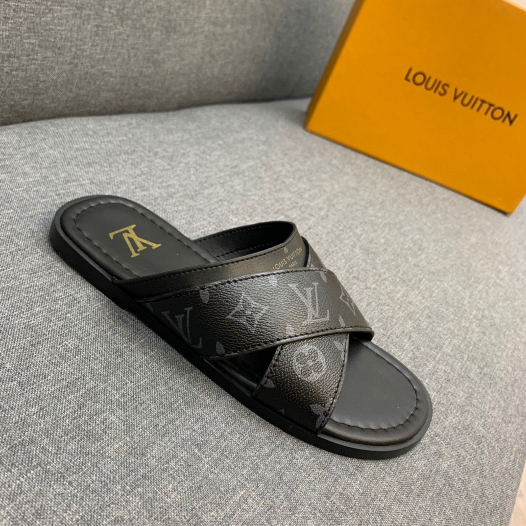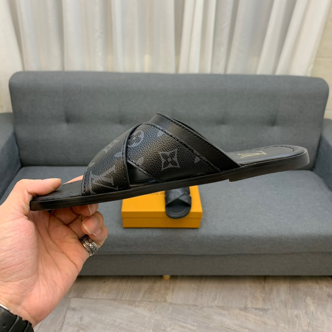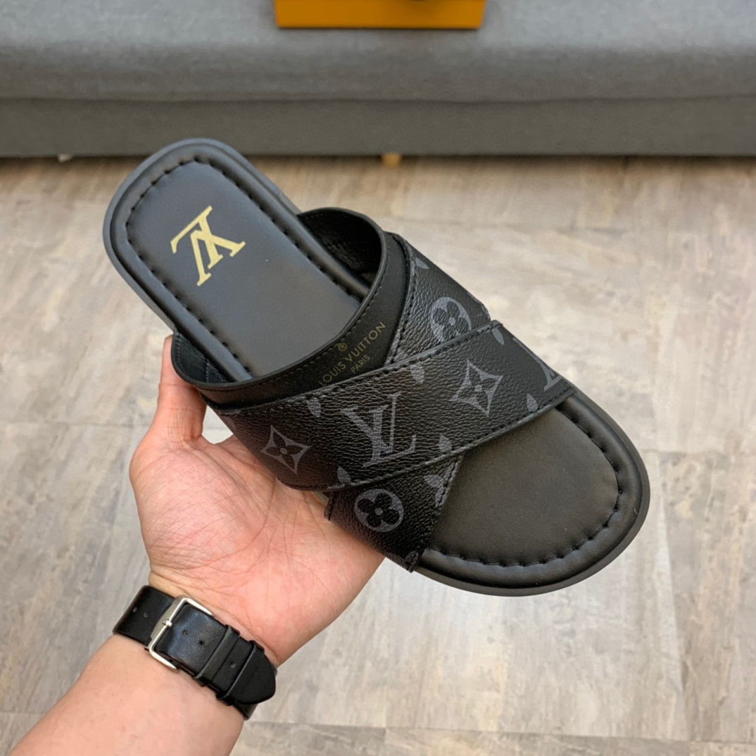 The Foch mule is distinguished by its wide cross-over straps in Monogram canvas and grained calf leather. This model features a padded insock for comfort and a flexible leather outsole with rubber inserts for slip-resistance.