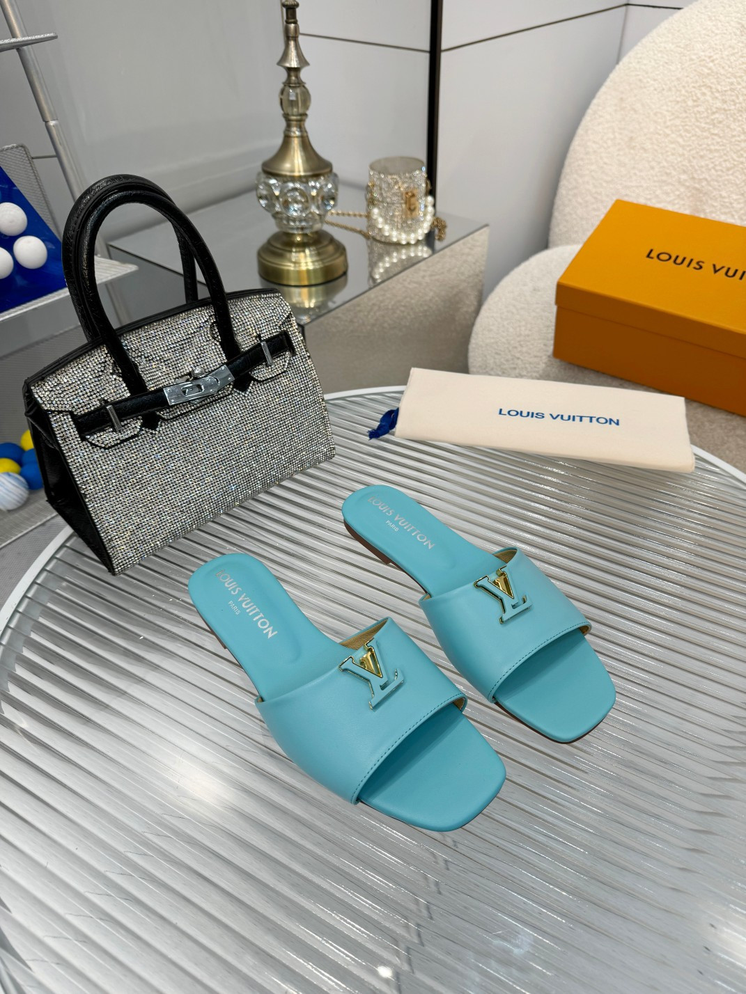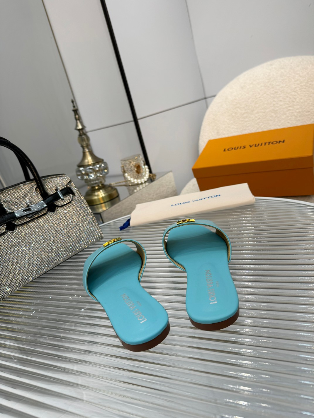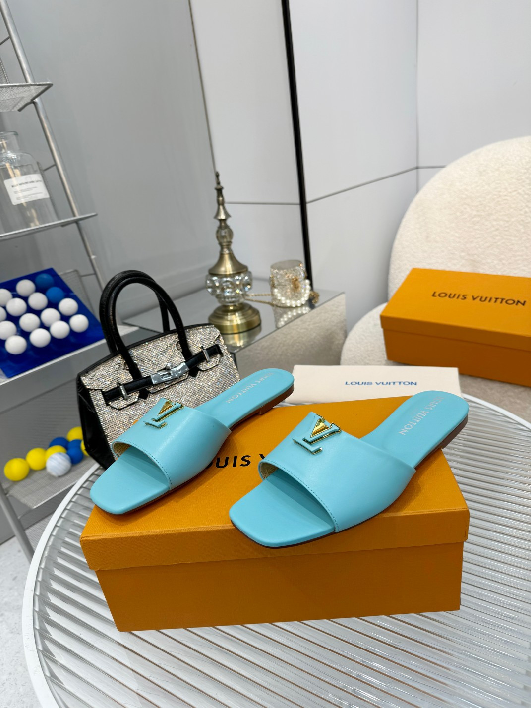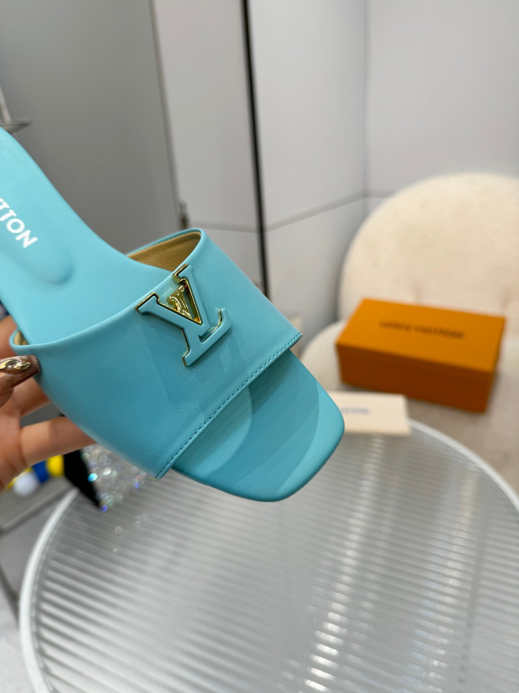 The LV Capri flat mule in smooth leather enriches the timeless LV Capri line, whose signature is a partially leather-covered LV Initials accessory. This model is notable for its wide front strap and low block heel, which make it both elegant and easy to wear.