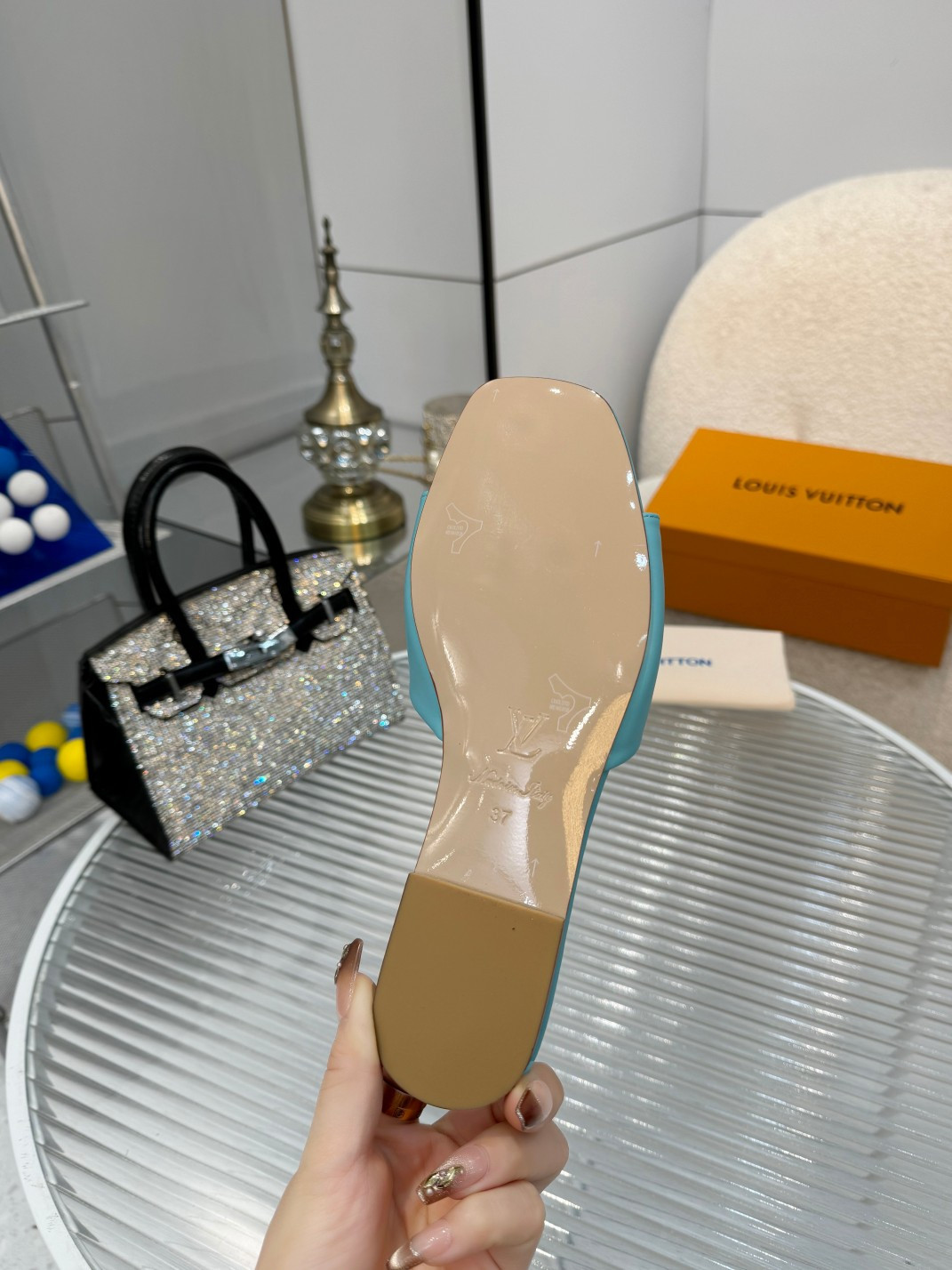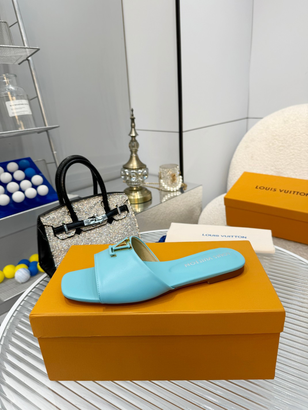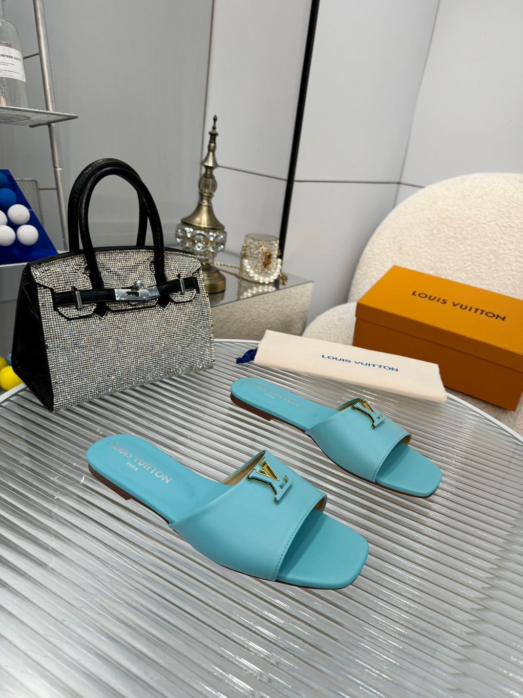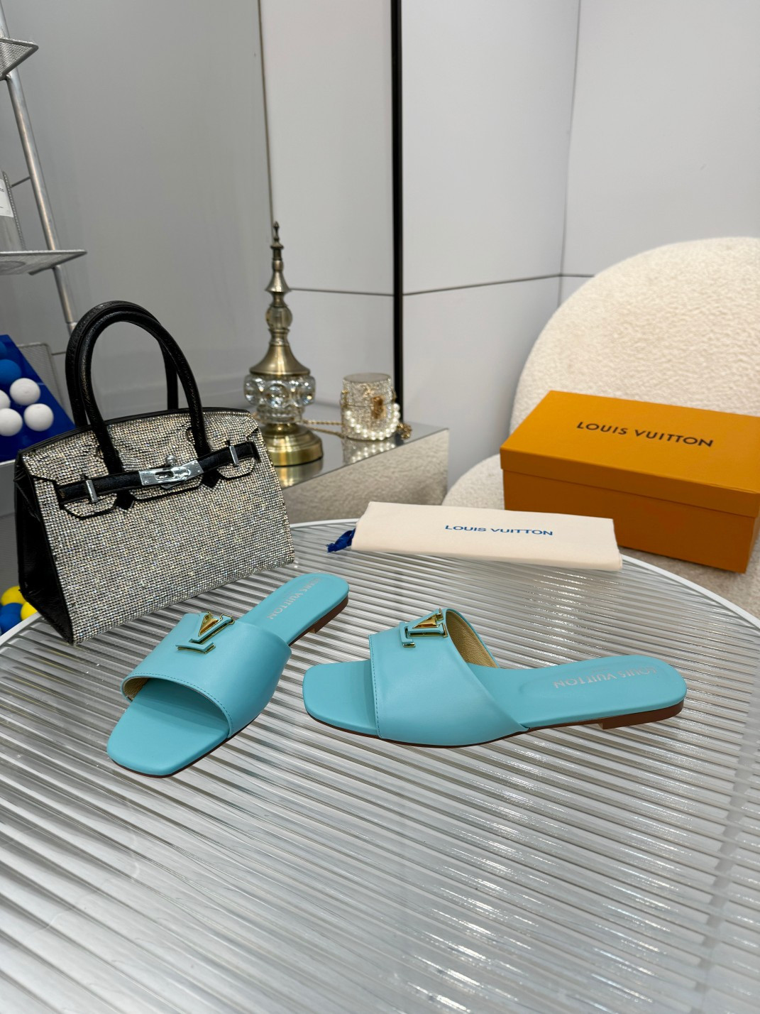 The LV Capri flat mule in smooth leather enriches the timeless LV Capri line, whose signature is a partially leather-covered LV Initials accessory. This model is notable for its wide front strap and low block heel, which make it both elegant and easy to wear.