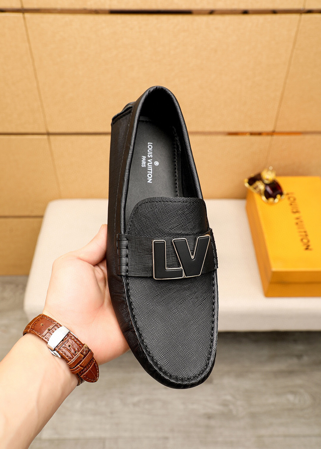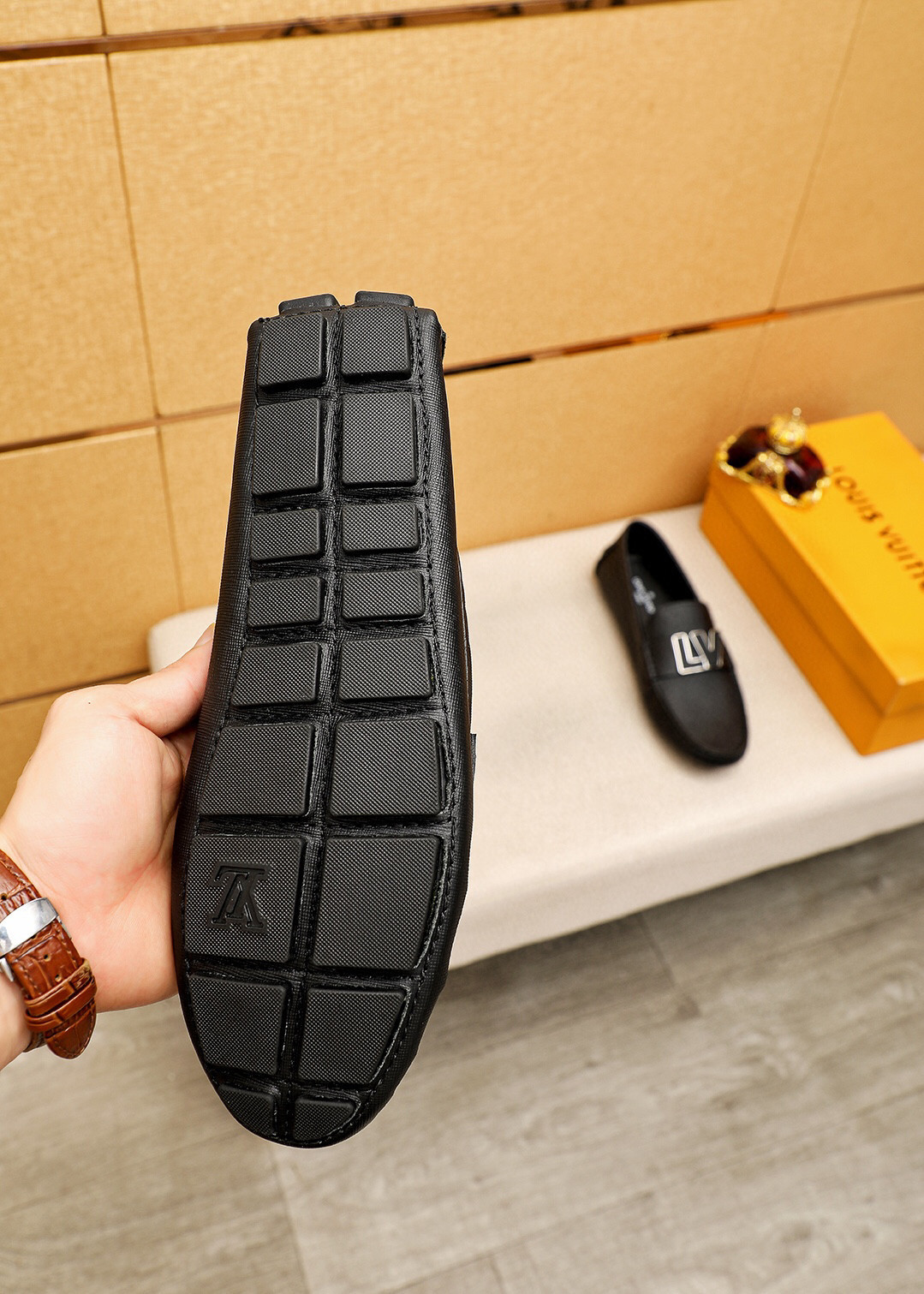 You're viewing: Louis Vuitton LV Initials Moccasin In Black Original price was: 334.31$.Current price is: 238.79$.