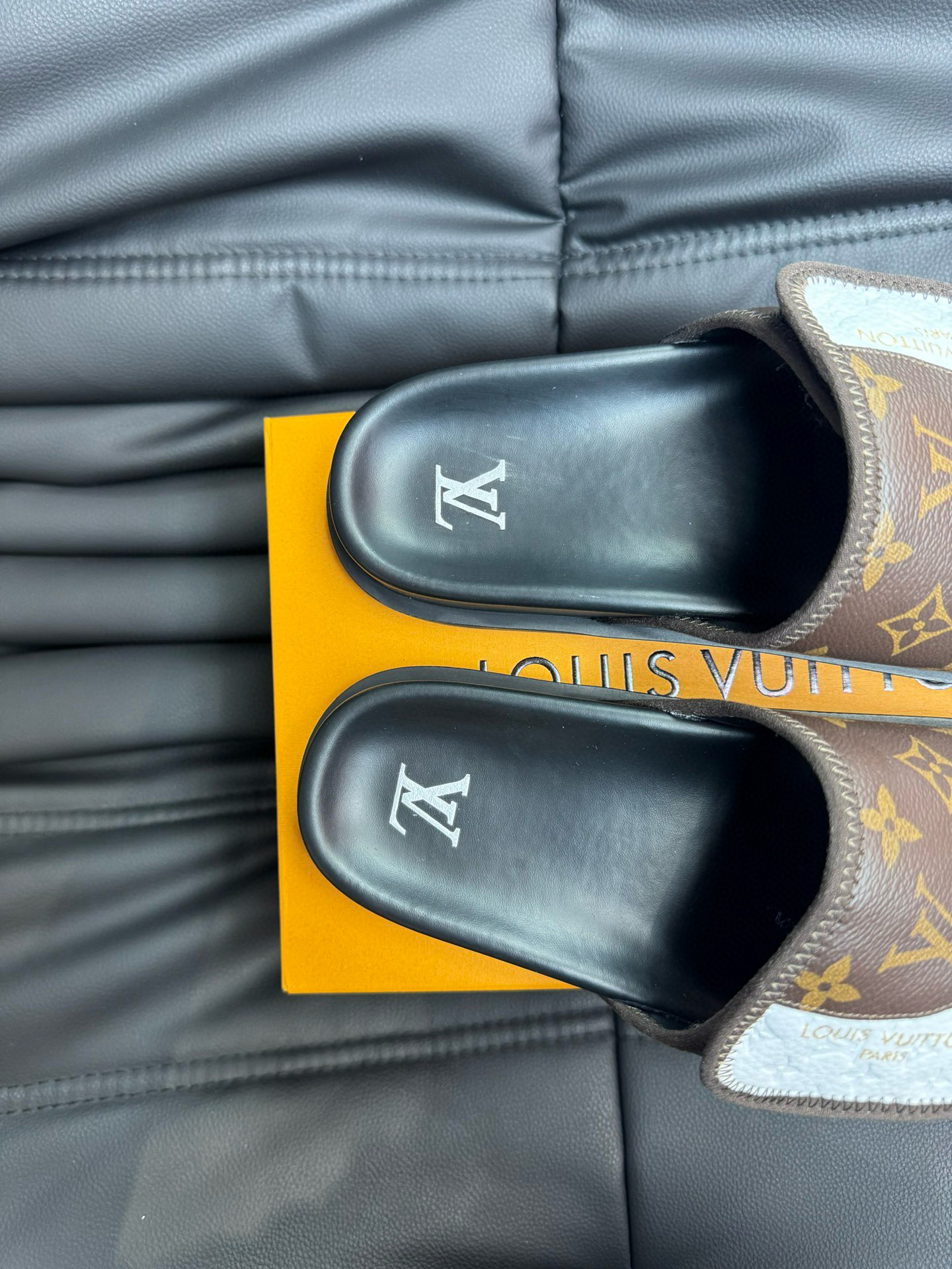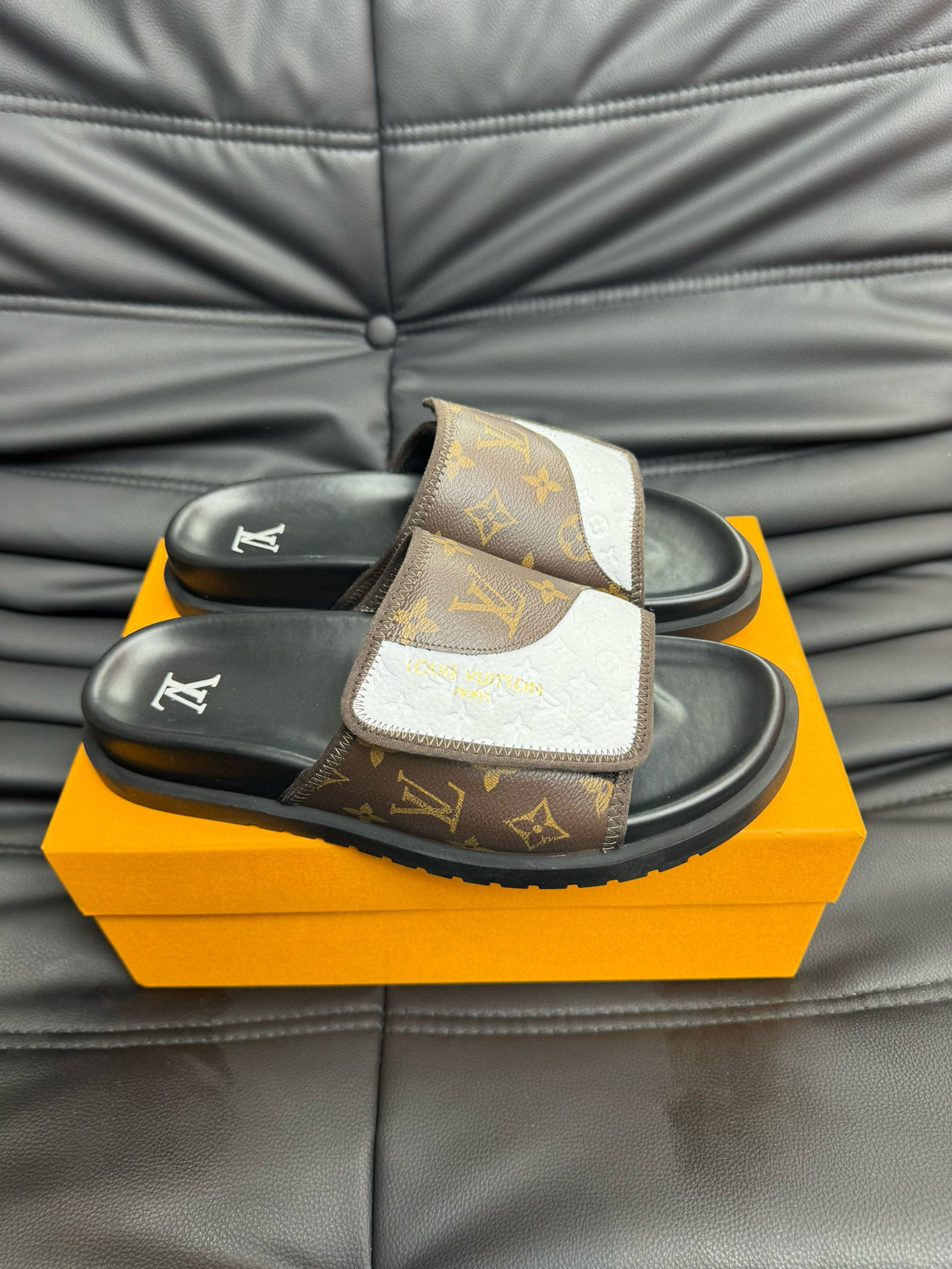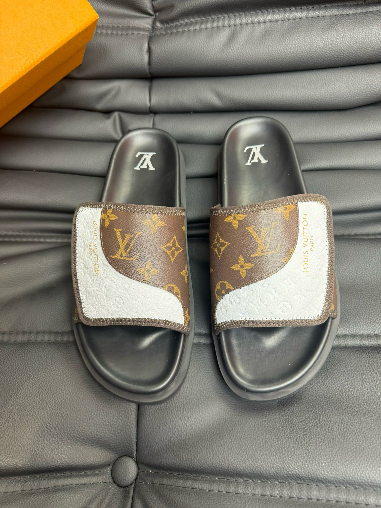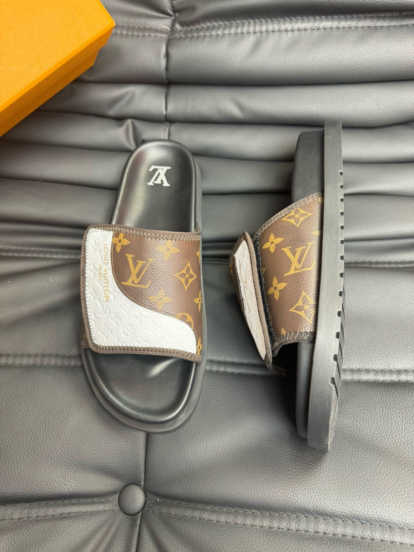 You're viewing: Louis Vuitton Miami Mule Slides In Brown/White Original price was: 334.31$.Current price is: 238.79$.