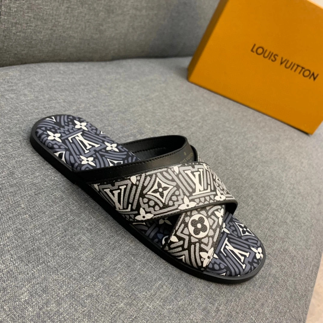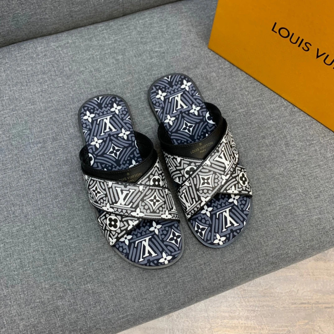 You're viewing: Louis Vuitton Monogram Cross Strap Slippers In Black And White Original price was: 334.31$.Current price is: 238.79$.