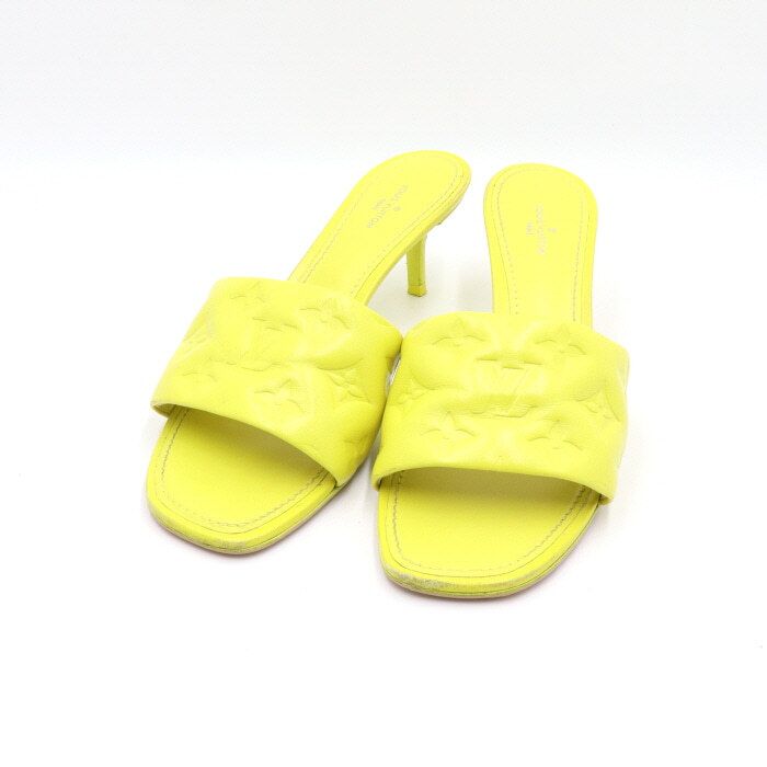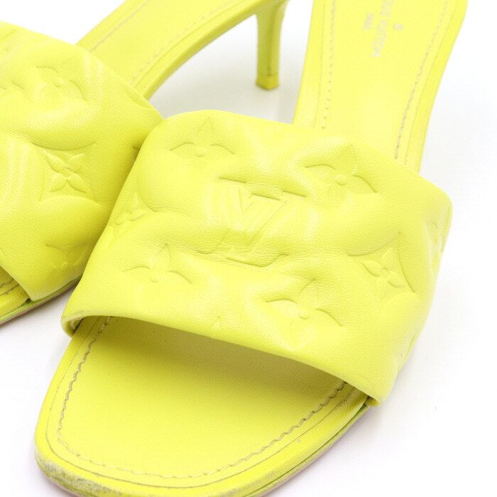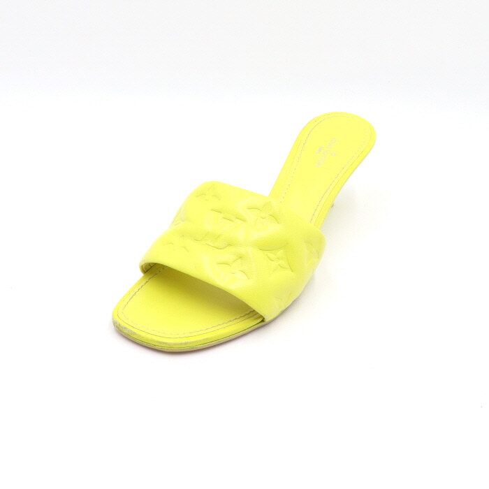 Color: YellowMaterial: Soft lamb leather with padded front strap showcasing a revival mule design. Features delicately embossed iconic monogram pattern by Louis Vuitton. Square toe and kitten heel for a feminine look. Leather outsole with color accent. Padded insole for comfort. Embossed monogram lamb leather upper. Heel height: 5.5cm / 2.2 inches. Manufacturer: Louis Vuitton. Made in Italy.